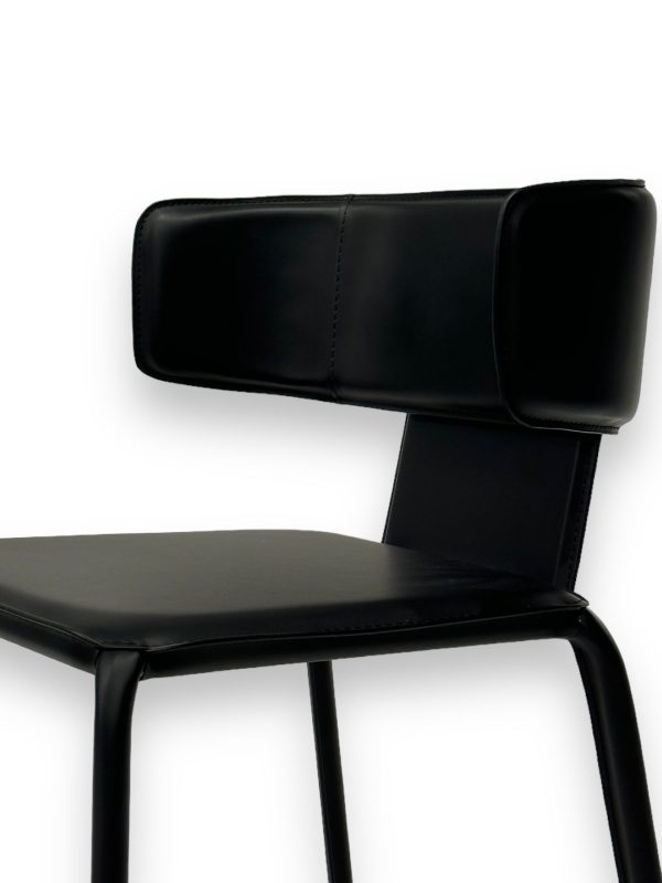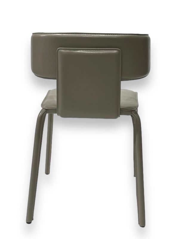 כסא אוכל מעוצב מדגם Hani בגימור עור אמיתי במושב וברגלי הכסא גב עגול למראה קלאסי ויוקרתי.