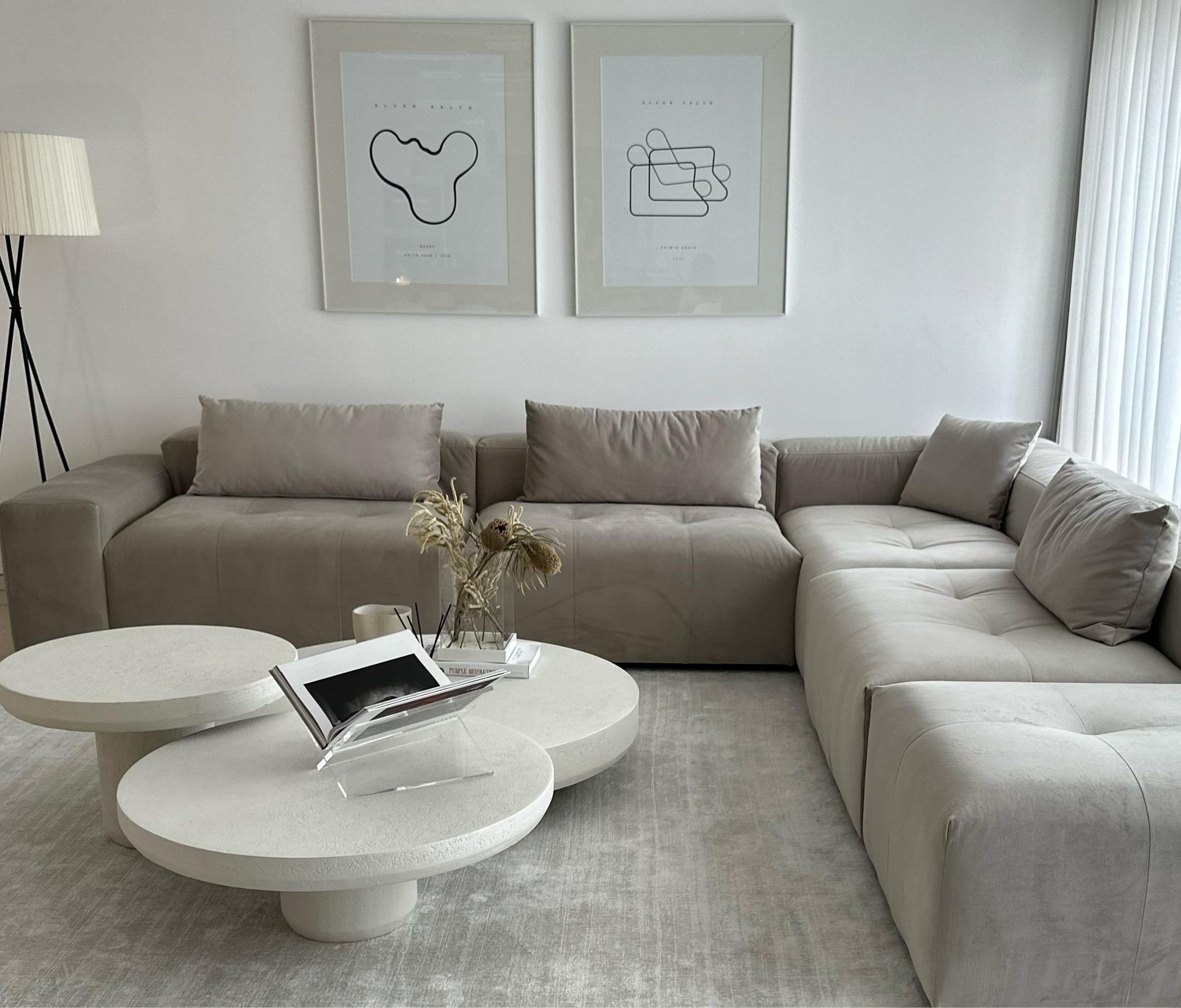 מורכבת מיחידת סלון רחבה ומרשימה העשויה מעץ מלא וריפוד בד בוקלה,