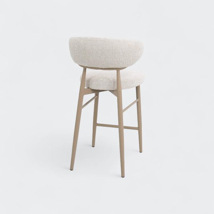 כסא בר מעוצב מדגם Melrose bar מושב בד מרופד עדין בשילוב רגלי ברזל בגוונים שחור ואבן .