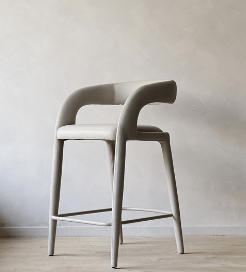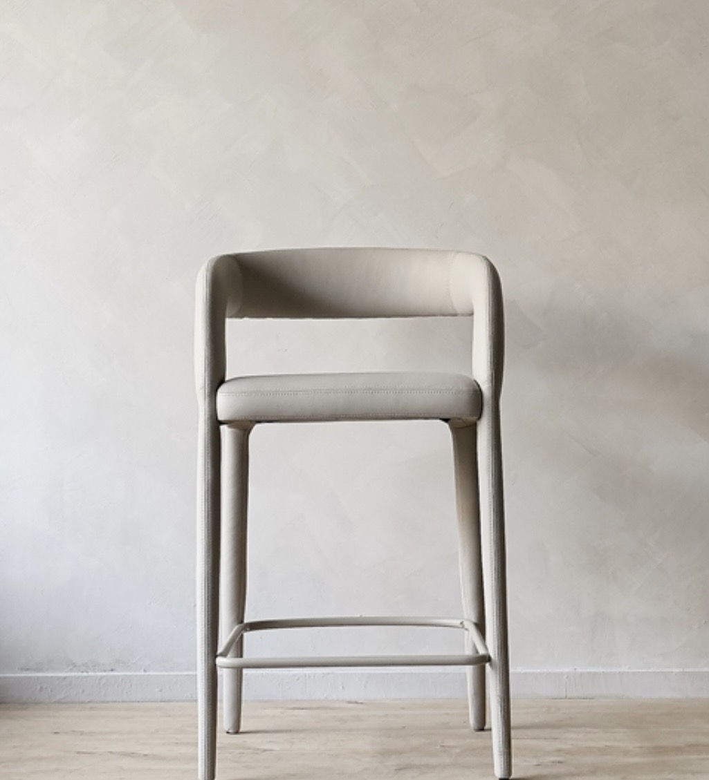 כסא בר מדגם מונרו בגימור דמוי עור מרופד כולו, בגוון אבן מושלם