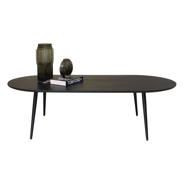 שולחן סלון מדגם Oaki קלאסי וייחודי פלטה עשויה עץ אלון מושחר אליפסה מאורכת שמתאימה בכל חלל בשילוב רגלי עץ תואמות.
