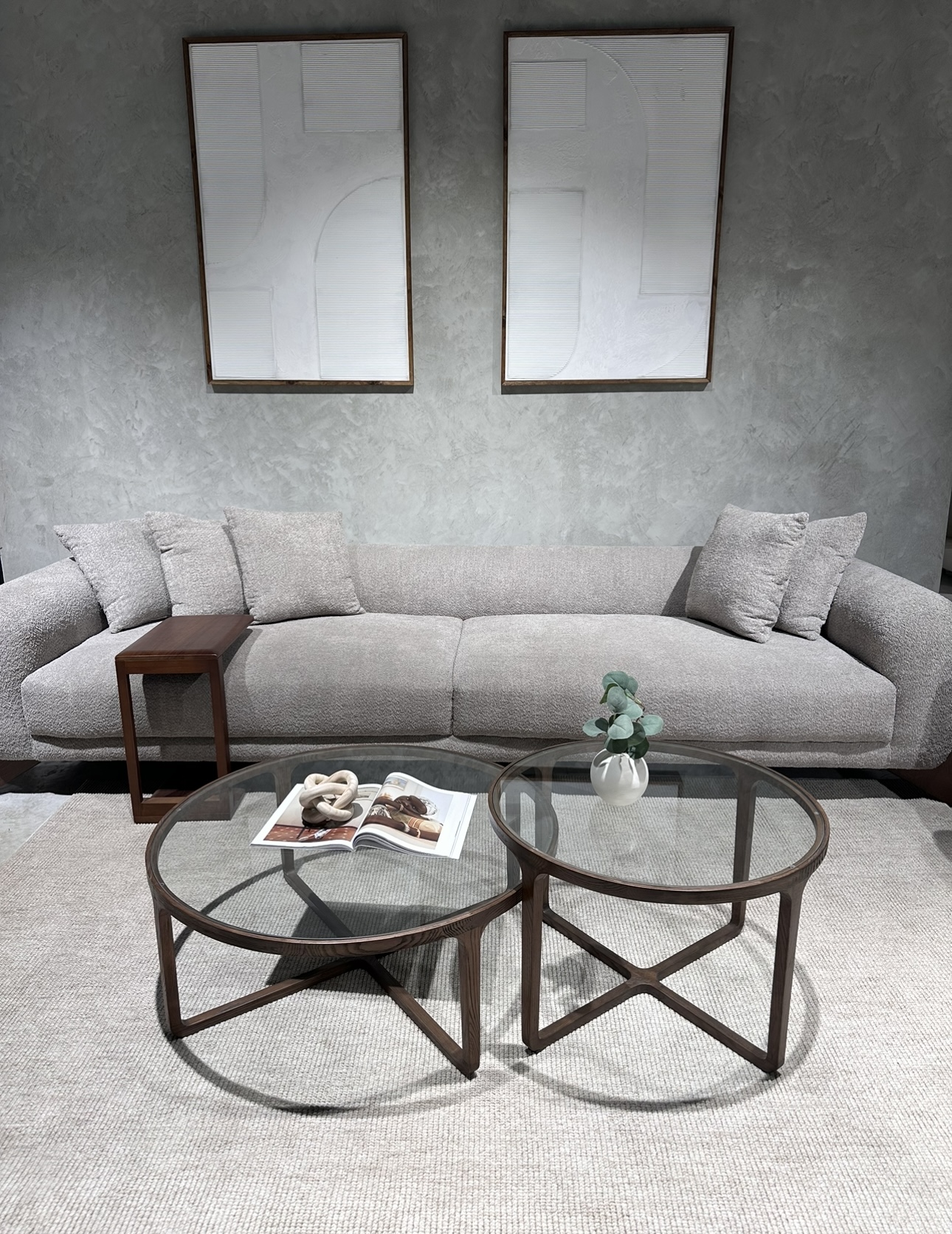 ספה מודולרית עשויה מעץ מלא וריפוד בד אריג,